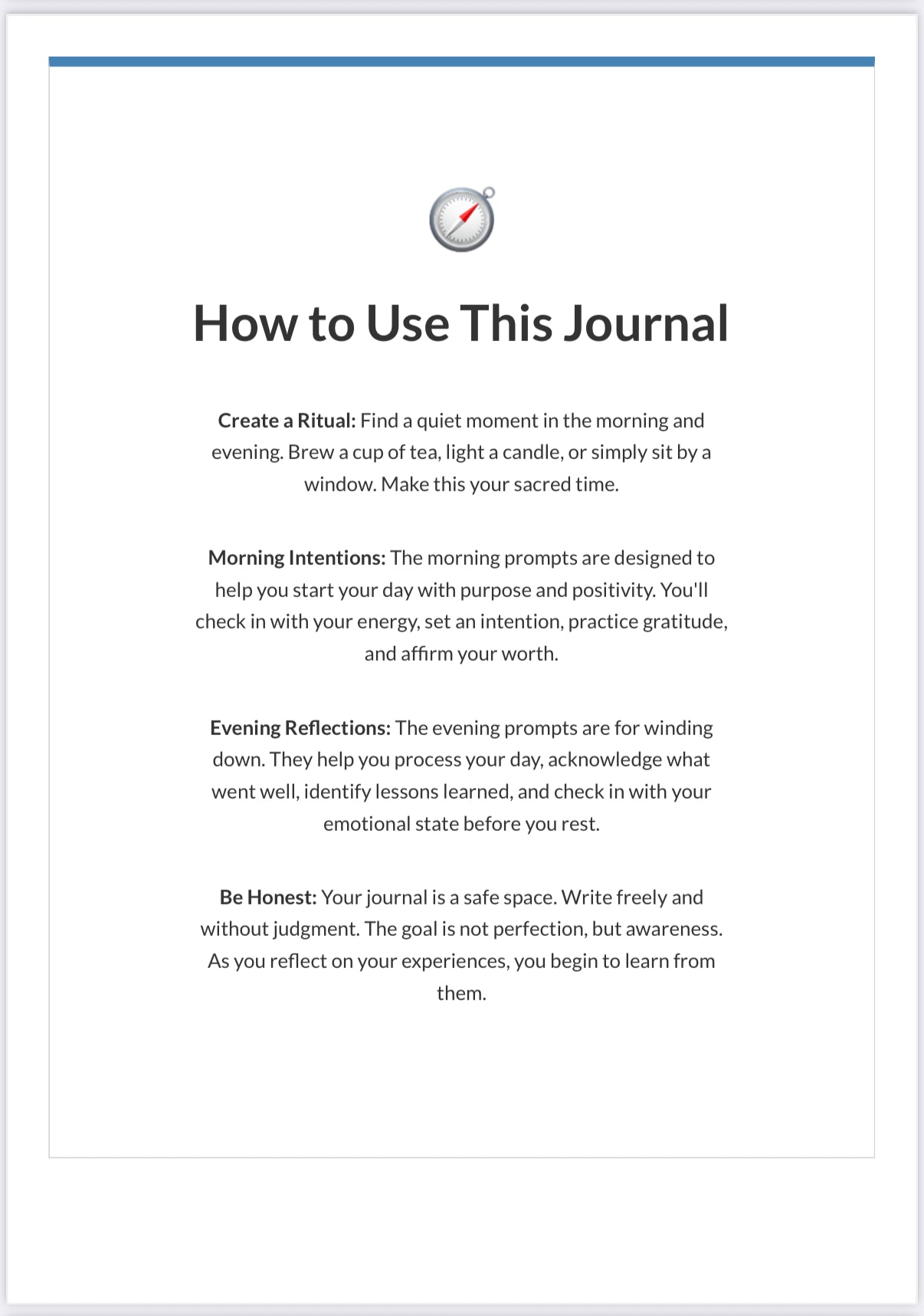 - Find Daily Clarity: Simple morning and evening prompts to guide your thoughts.